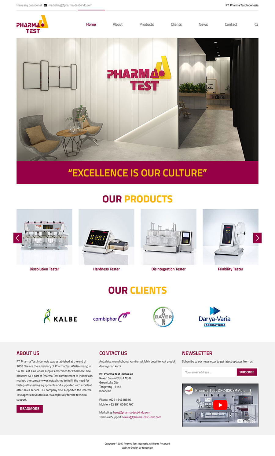 Ini adalah portfolio kami terkait proyek web design dan web development untuk PT Pharma Test Indonesia. Kami fokus di industri web design dan web development sejak tahun 2009. Kami terus mengikuti perkembangan jaman dan perkembangan teknologi untuk memastikan hasil kerja yang baik untuk setiap klien kami.